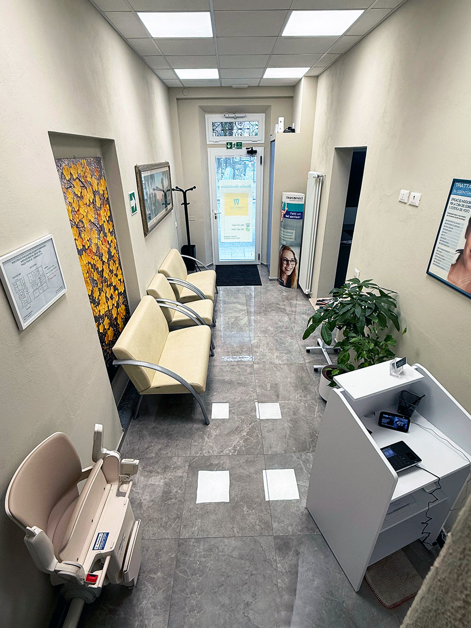 Il nostro studio dentistico a Scandicci ha un ingresso diretto su strada, una sala operativa al piano terra e un servoscala per chi ha difficoltà motorie.